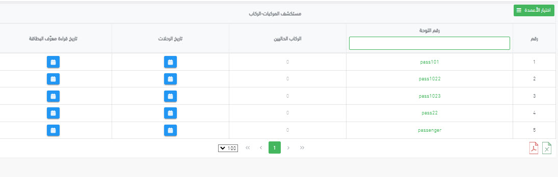 - مستكشف الركاب: تم تصميم هذا المستكشف على أساس الركاب. يُظهر اسم كل راكب، والمركبة الحالية، وتاريخ الرحلات، وتاريخ قراءة معرّف البطاقة الخاصة بهم.