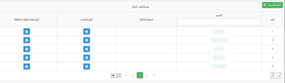 b. الإدارة: في هذه الصفحة، يمكنك تعريف أي عدد تريده من الركاب. يمكنك الإضافة واحداً تلو الأخرى أو استيراد ملف إكسل لعدد كبير من الركاب.