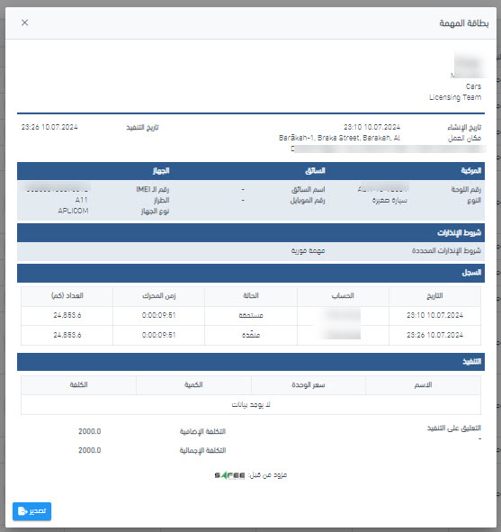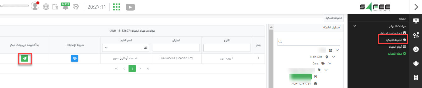 - قُم بتحديد المركبة التي ترغب في إنشاء مهمة صيانة لها، وانتظر قليلاً! سيعرض النظام قائمة شاملة لجميع مهام الصيانة المرتبطة بالمركبة المحددة، مع جميع التفاصيل الحيوية الخاصة بها.
