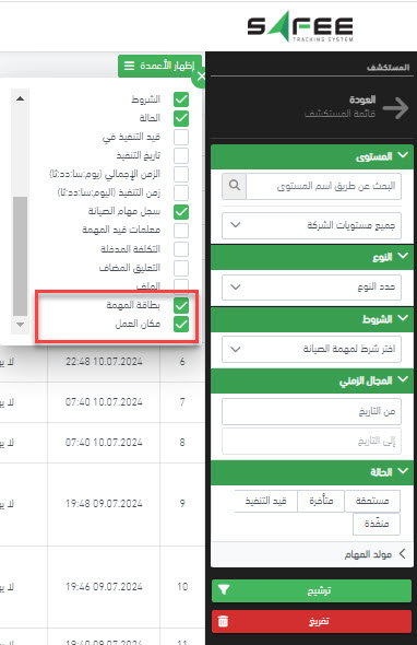 وبطاقة الصيانة يمكن عرضها من عمود بطاقة المهمة.