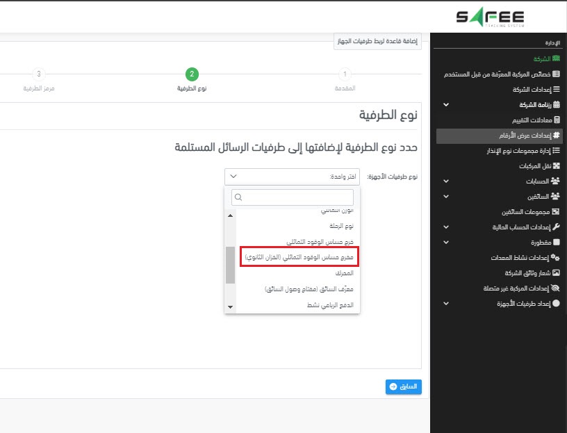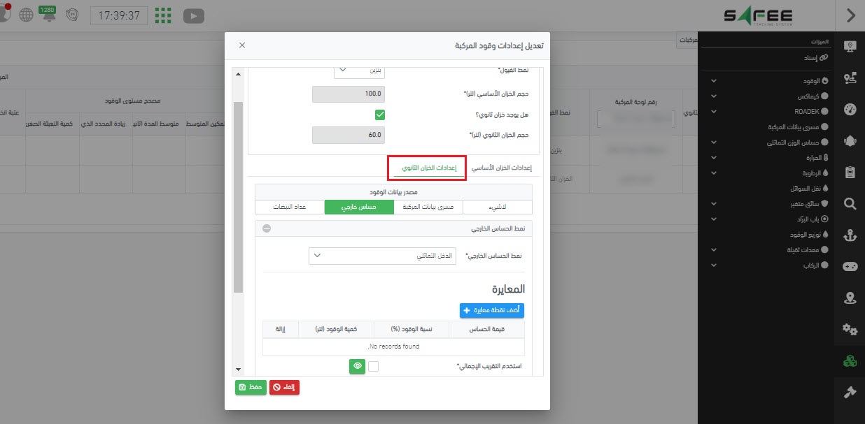 - إعدادات المركبة ضمن صفحة ميزة الوقود: هذه الصفحة مهمة لضبط إعدادات المركبات بخزان وقود ثانوي وتحديد كيفية الحصول على معلومات الوقود من الخزان الثانوي. يضمن التكوين المناسب التكامل الدقيق للبيانات عبر مكونات النظام.