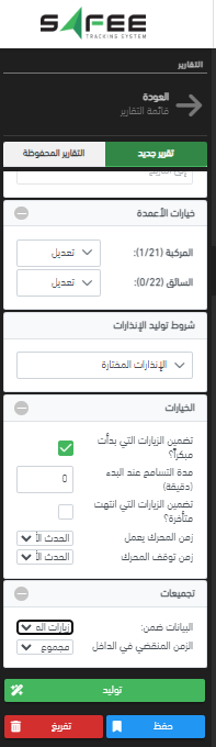 تجاهل كان المحرك مطفأ: سيترك هذا العمود الخاص بزمن توقف المحرك فارغاً، حيث لا يهتم المستخدم بزمن حدث توقف المحرك في الحالات التي تكون فيها المركبات مطفأة بالفعل.