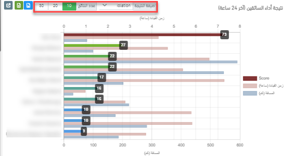 - نتيجة أداء السائقين (آخر 24 ساعة): ستعتمد النتائج على الصيغة المحددة من إعدادات العنصر. ستُحفظ الصيغة المحددة لكل حساب.