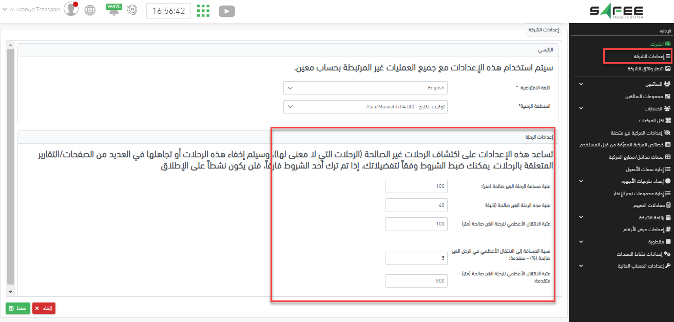في صفحة إعدادات الشركة، ستجد إعدادات جديدة سيستخدمها النظام لتحديد صلاحية الرحلات.