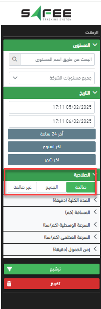 سيتم استبعاد الرحلات الغير صالحة -وفقاً لإعداداتك- من جميع تقارير الرحلات.