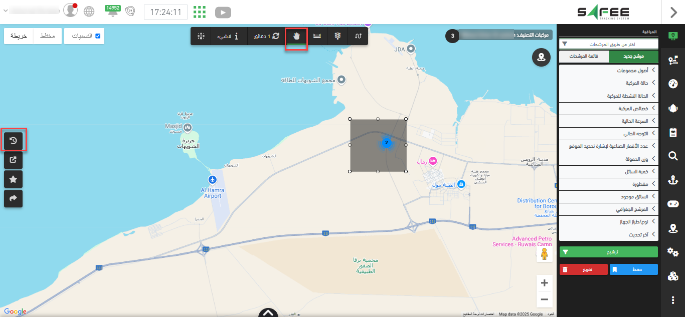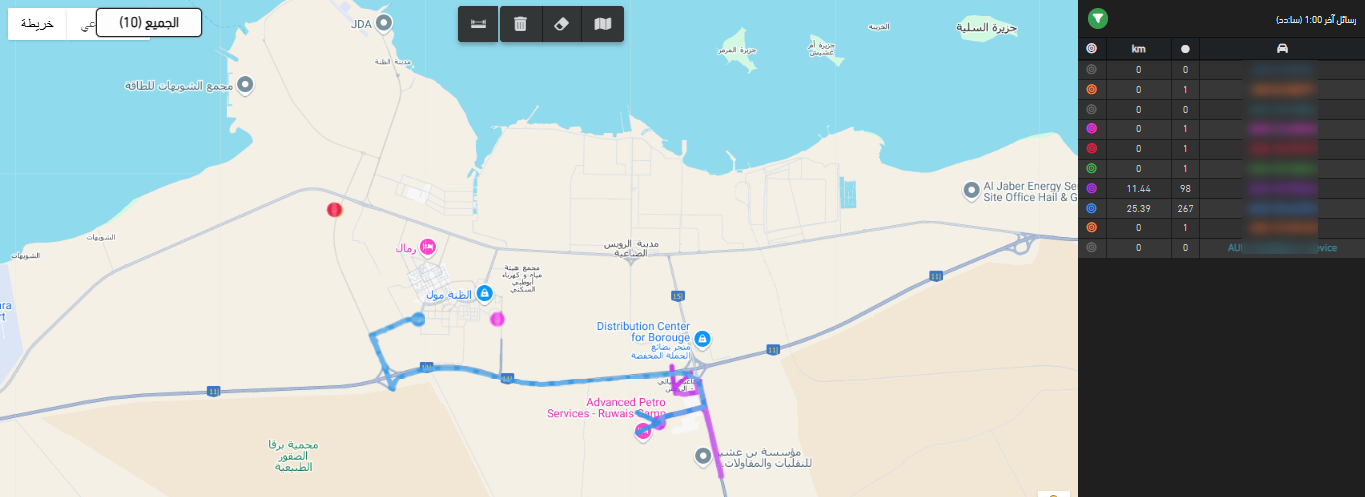- أو يمكنك اختيار المركبات المستهدفة مباشرة على الخريطة وبدء التتبع على النحو التالي: