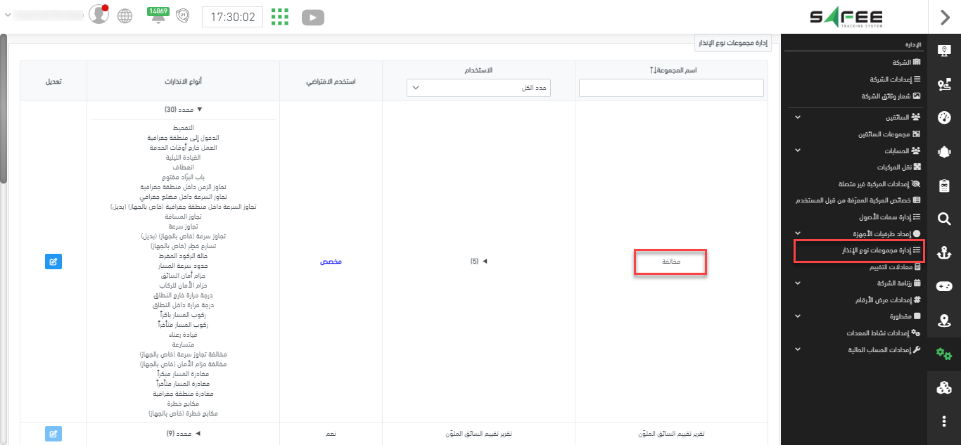 من الجدير بالذكر أننا قدمنا تحسيناً آخر لصفحة تاريخ المركبة. يتعلق الأمر بنوافذ “الإنذار” المنبثقة التي تظهر على الخريطة. الآن أصبحت أكثر ثراءً وسهولة في الاستخدام. سيتم التحكم في لون عنوانها من خلال إعداداتك في صفحة “إدارة مجموعات نوع الإنذار”؛ إذا تم تصنيف الإنذار على أنه مخالفة، فسيكون العنوان باللون الأحمر، وإلا فسيظهر باللون الرمادي.