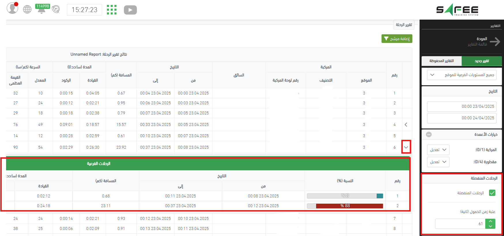 - تمت إضافة إعداد جديد إلى مدخلات تقرير الرحلة، يتيح لك اختيار عتبة زمن الخمول بالثواني (مثل 300 ثانية - 5 دقائق).
