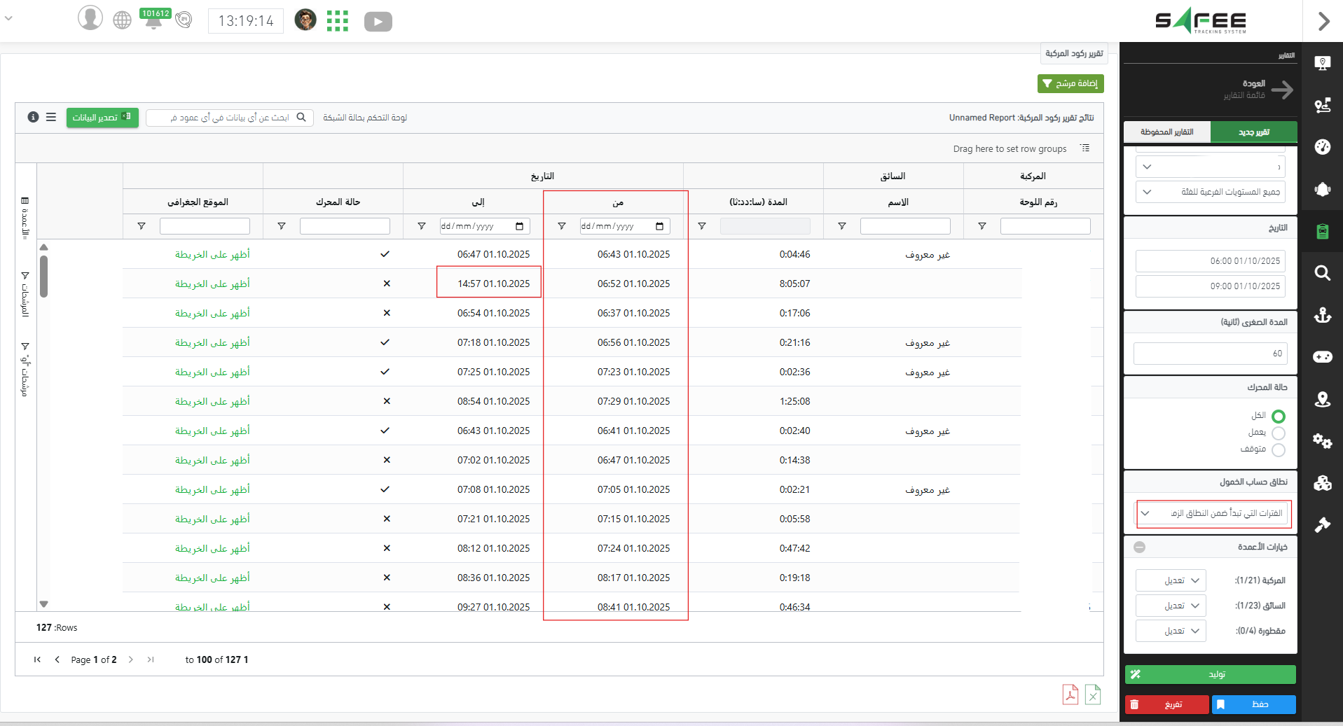 1. تحسينات على تقرير ركود المركبة