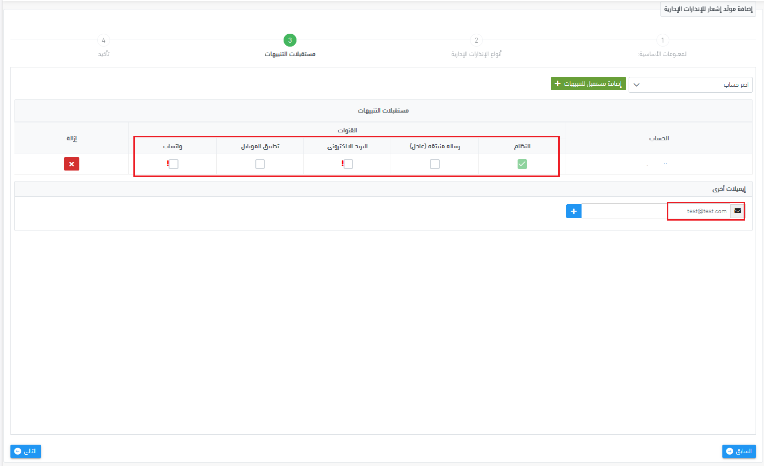 - يتم إرسال الإشعار المُولّد إلى جميع القنوات التي حددتها في خطوة “مستقبلات التنبيهات”.