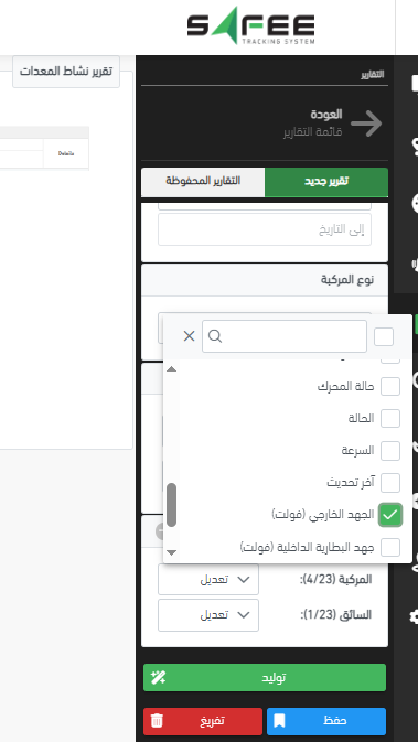 يمكن للمستخدمين الآن اختيار سمات المركبات أو السائقين عند إنشاء تقرير نشاط المعدات. توفر هذه الميزة الجديدة مزيداً من المرونة والتخصيص في عملية إنشاء التقارير وعرض النتائج.