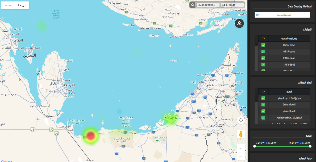 عند فتح الخريطة الحرارية لأول مرة، سيتم تلقائيًا تطبيق نفس المرشحات التي قمت بتحديدها مسبقًا في صفحة الانذارات*.