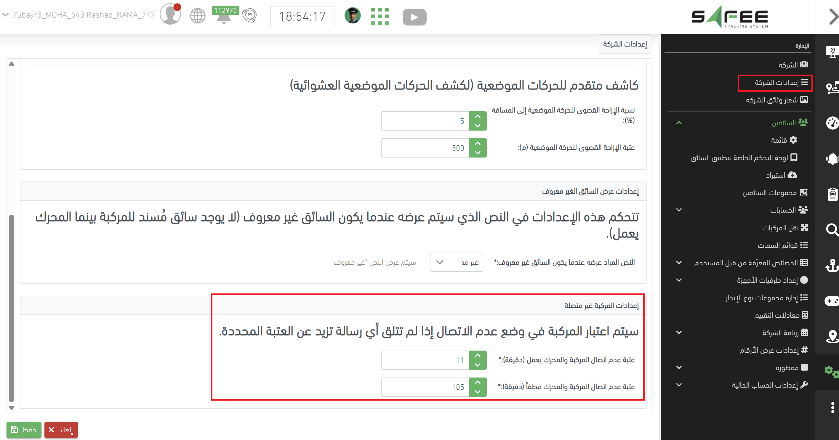 - لن يتم إطلاق الإنذار للمركبات التي لم ترسل أي بيانات سابقًا.