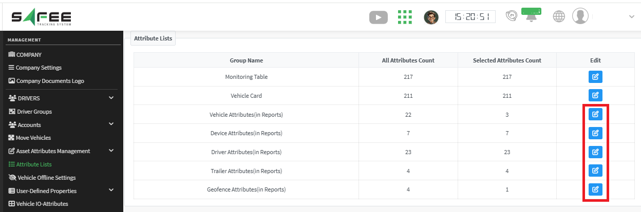 N.B.1. For the sake of usability, we have added by default the most well-known assets attributes. That is the numbers (22, 7, 23, 4, 4) in the attributes list for (vehicles, devices, drivers, trailers, geofences) respectively. In case you want to decrease the appearing list, you will need to uncheck the undesired attributes in the attributes list page. If you need more attributes to be added other than the listed ones, please get in touch with us.