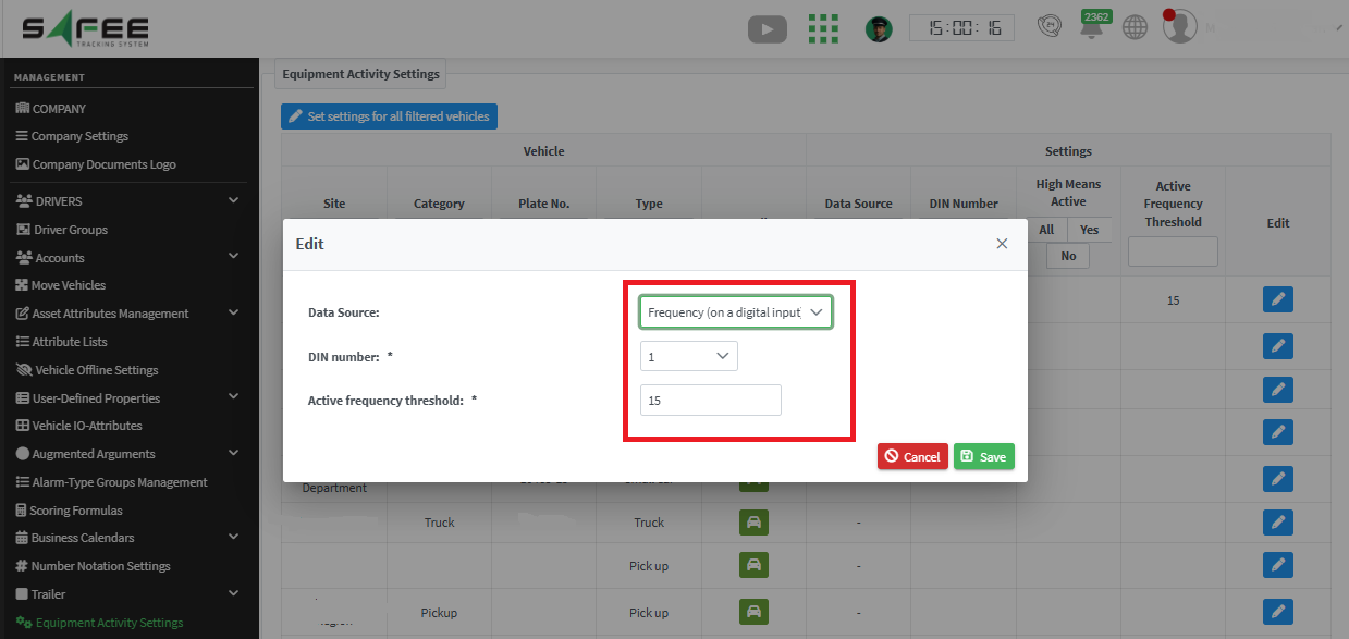 if the received frequency is greater than the set threshold, the equipment is considered “ACTIVE”