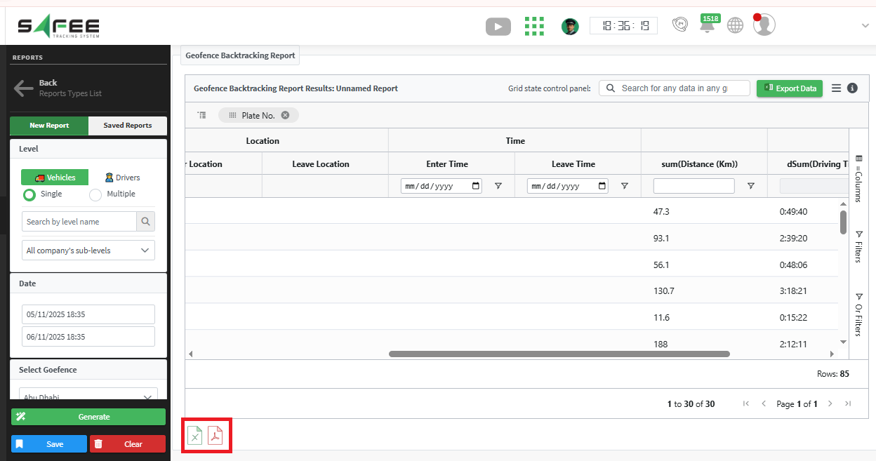 - Added Excel and PDF exporters specifically for the Geofence Backtrack report